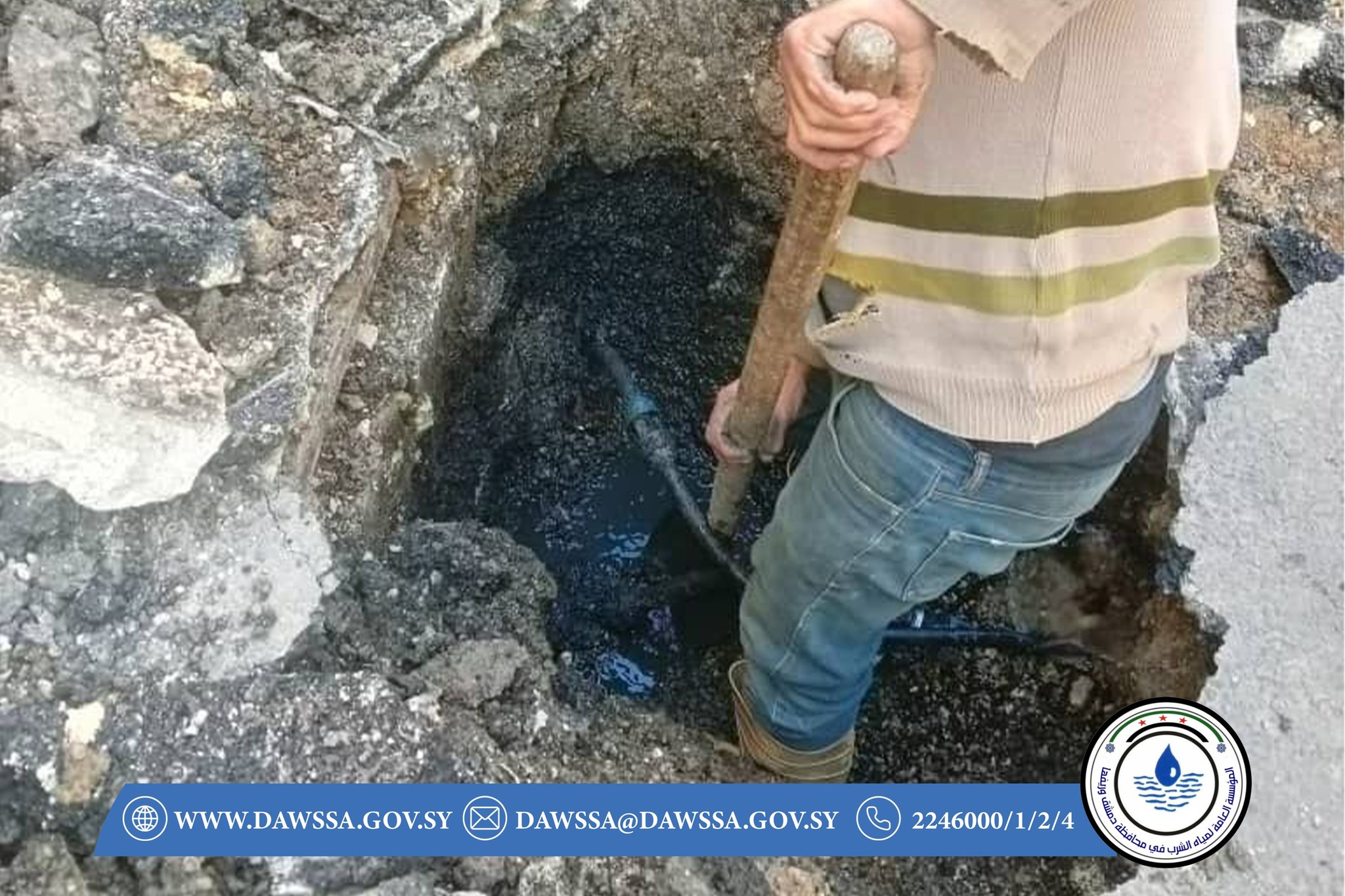 معالجة التلوث الحاصل في شبكة المياه منطقة كفرسوسة