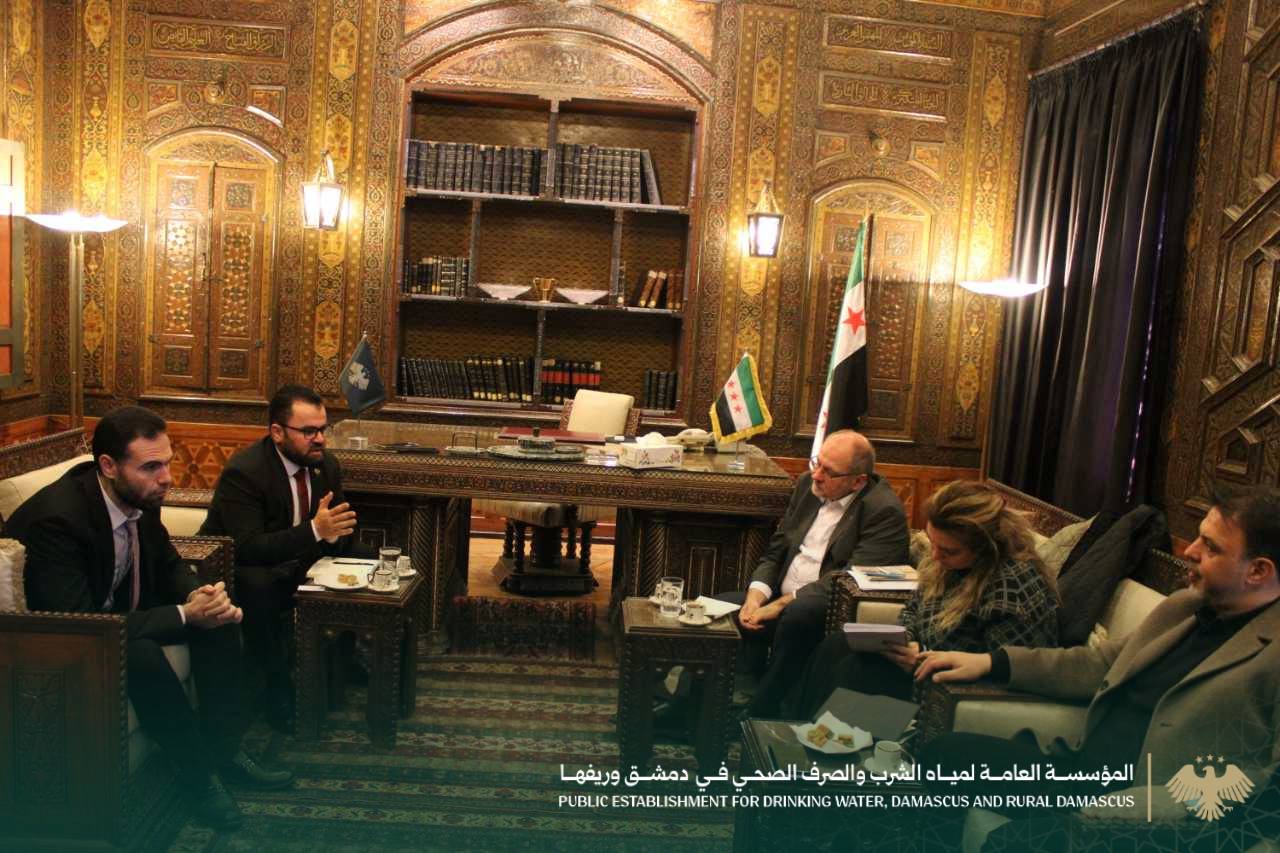 التقى السيد المدير العام للمؤسسة المهندس "أحمد درويش" -صباح اليوم- وفداً من منظمة الهلال الأحمر العربي السوري (SARC) ضمّ السيد "فراس فرّاس" منسق إدارة المياه وإعادة التأهيل بسوريا والمهندس "محمد سهيل المصري" منسق دمشق وريفها والمنطقة الجنوبية والمهندس "صالح شقير" منسق إدارة المياه وإعادة التأهيل بدمشق، حيث جرى خلال اللقاء مناقشة واقع وآفاق التعاون وتعزيز الشراكة لتنفيذ خطط وبرامج المؤسسة الاستراتيجية لتحسين خدمات مياه الشرب في محافظتي دمشق وريفها.