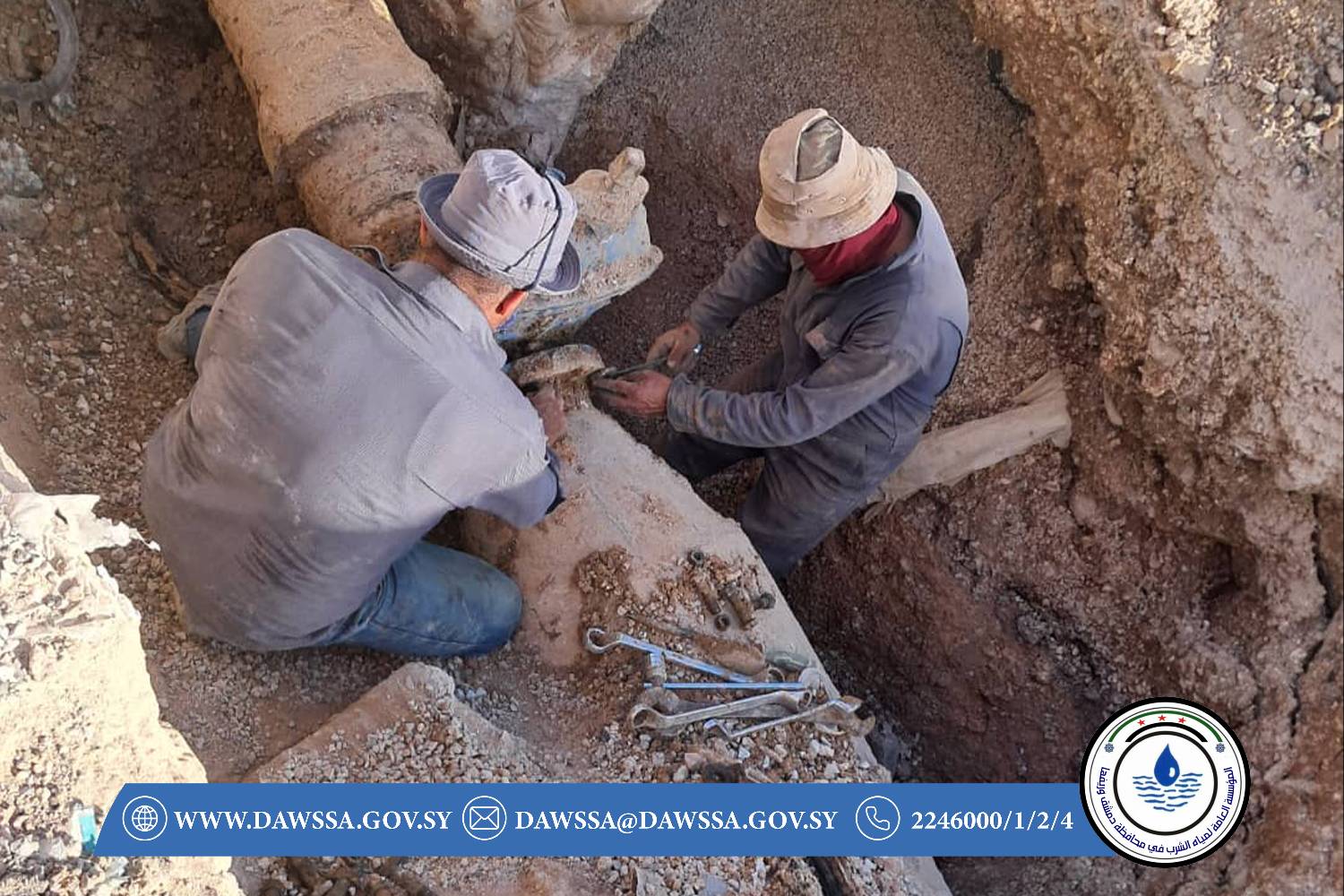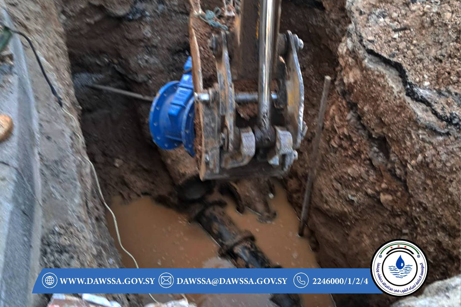 وفي قطنا، تم إزالة تعدٍ على خط الضخ الرئيسي القادم من رخلة بقطر 450 ملم، ما يسهم في تقليل الهدر وتحسين إيصال المياه.
