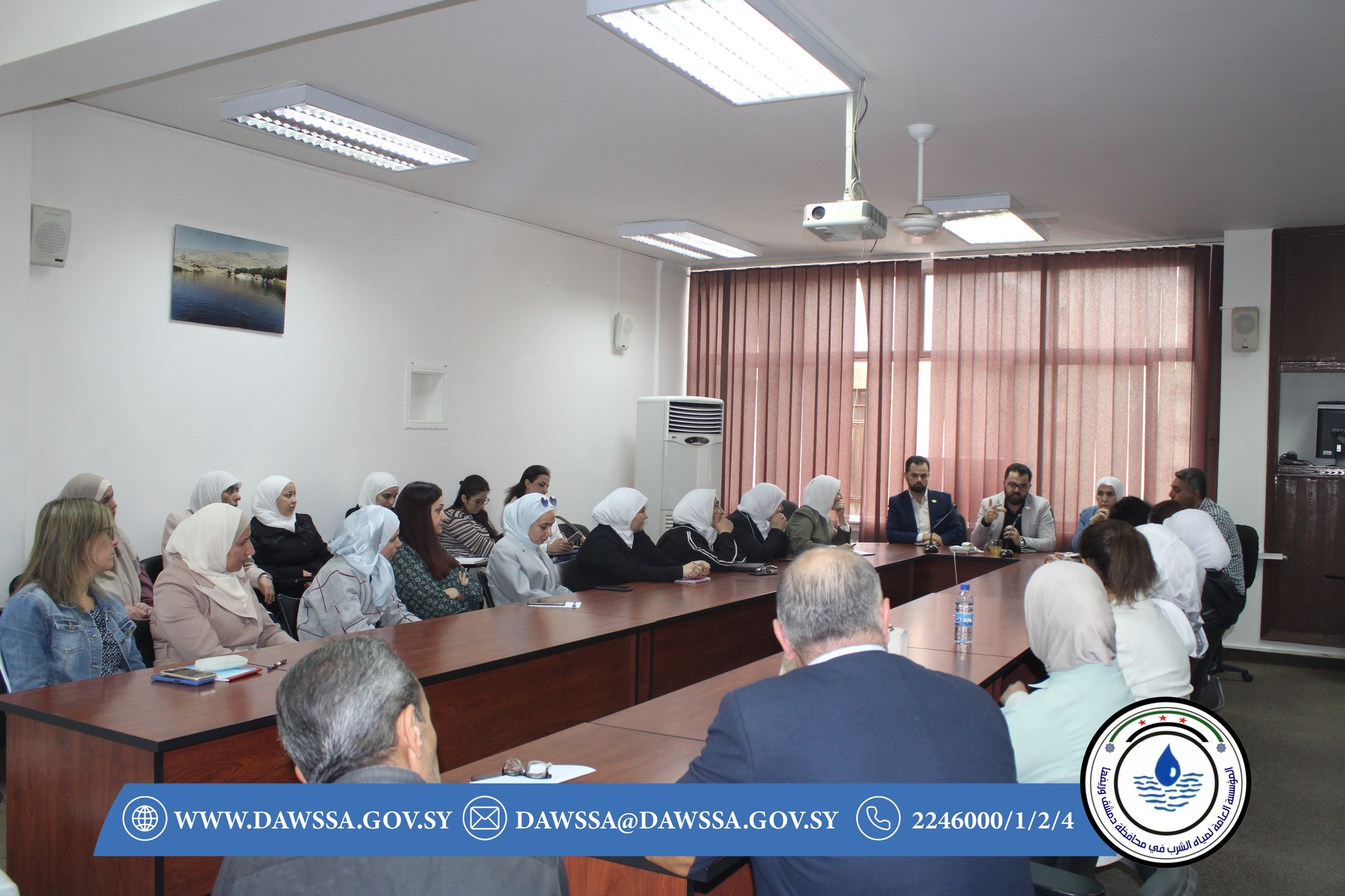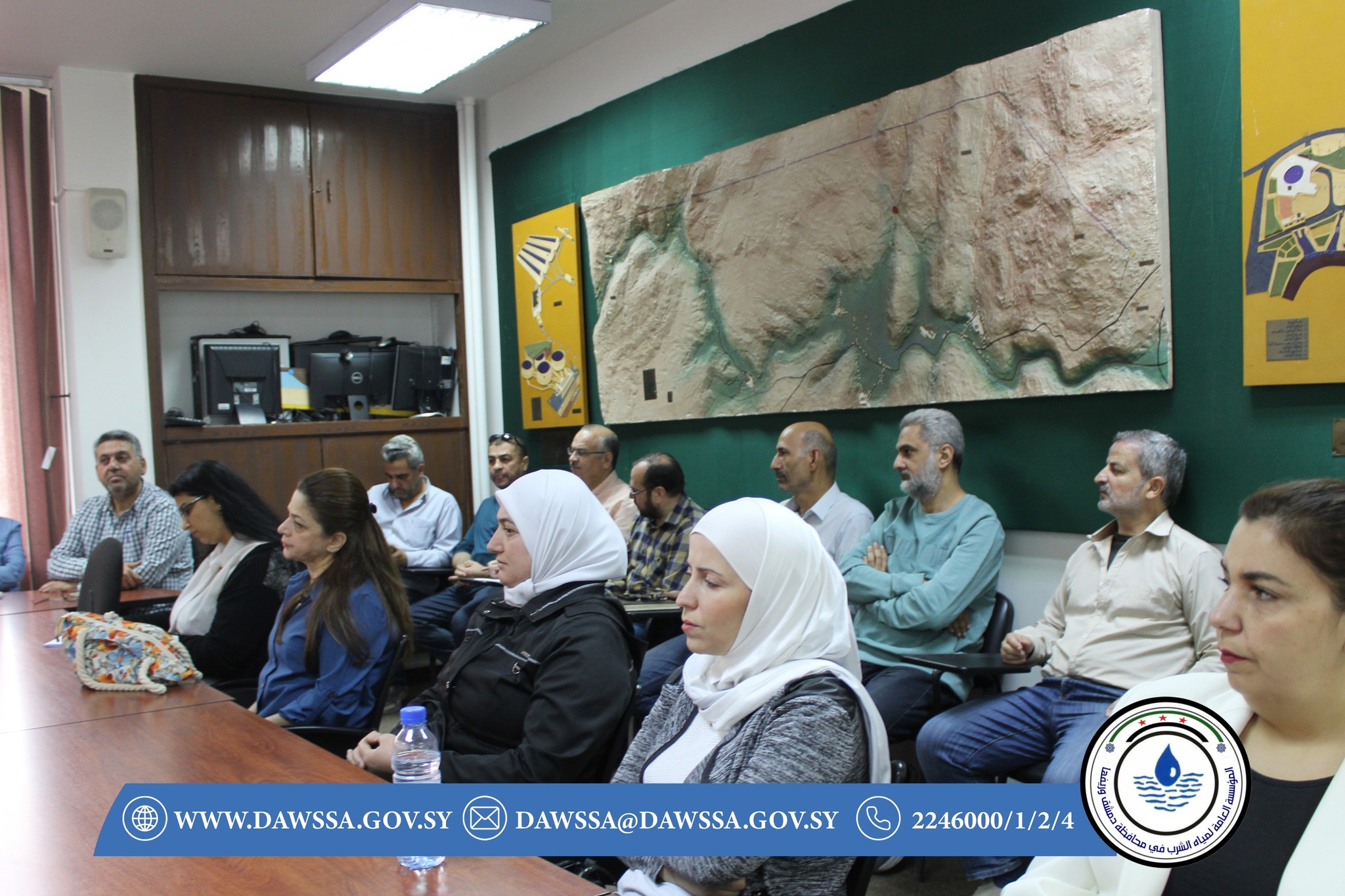 اجتماع المدير العام لمؤسسة مياه الشرب في محافظة دمشق وريفها ومعاونه للشؤون الفنية مع كوادر مديرية الدراسات والتصاميم في المؤسسة