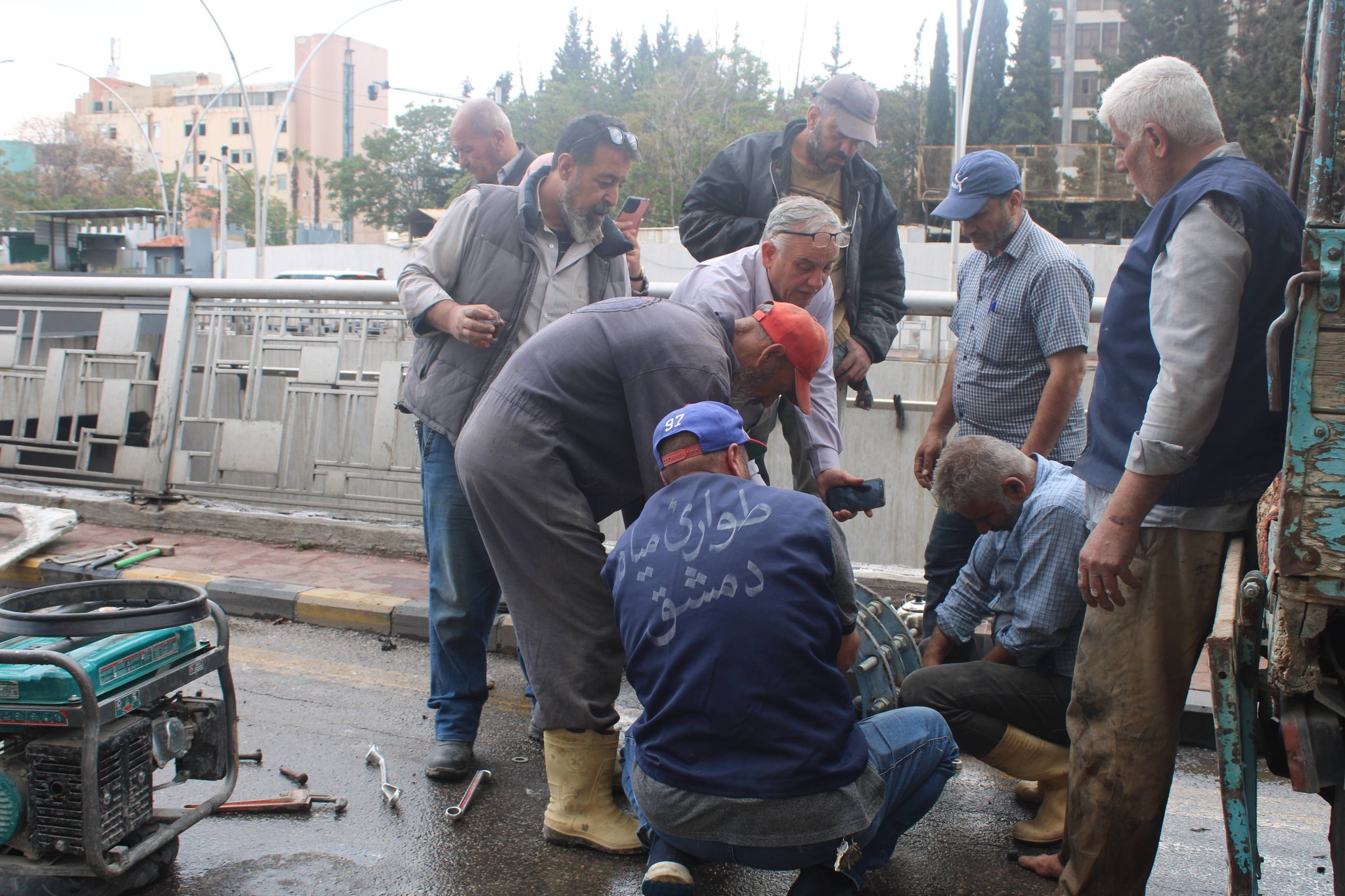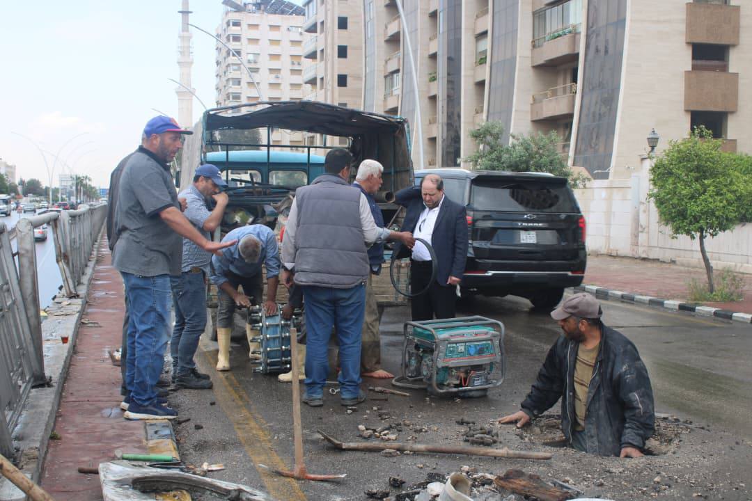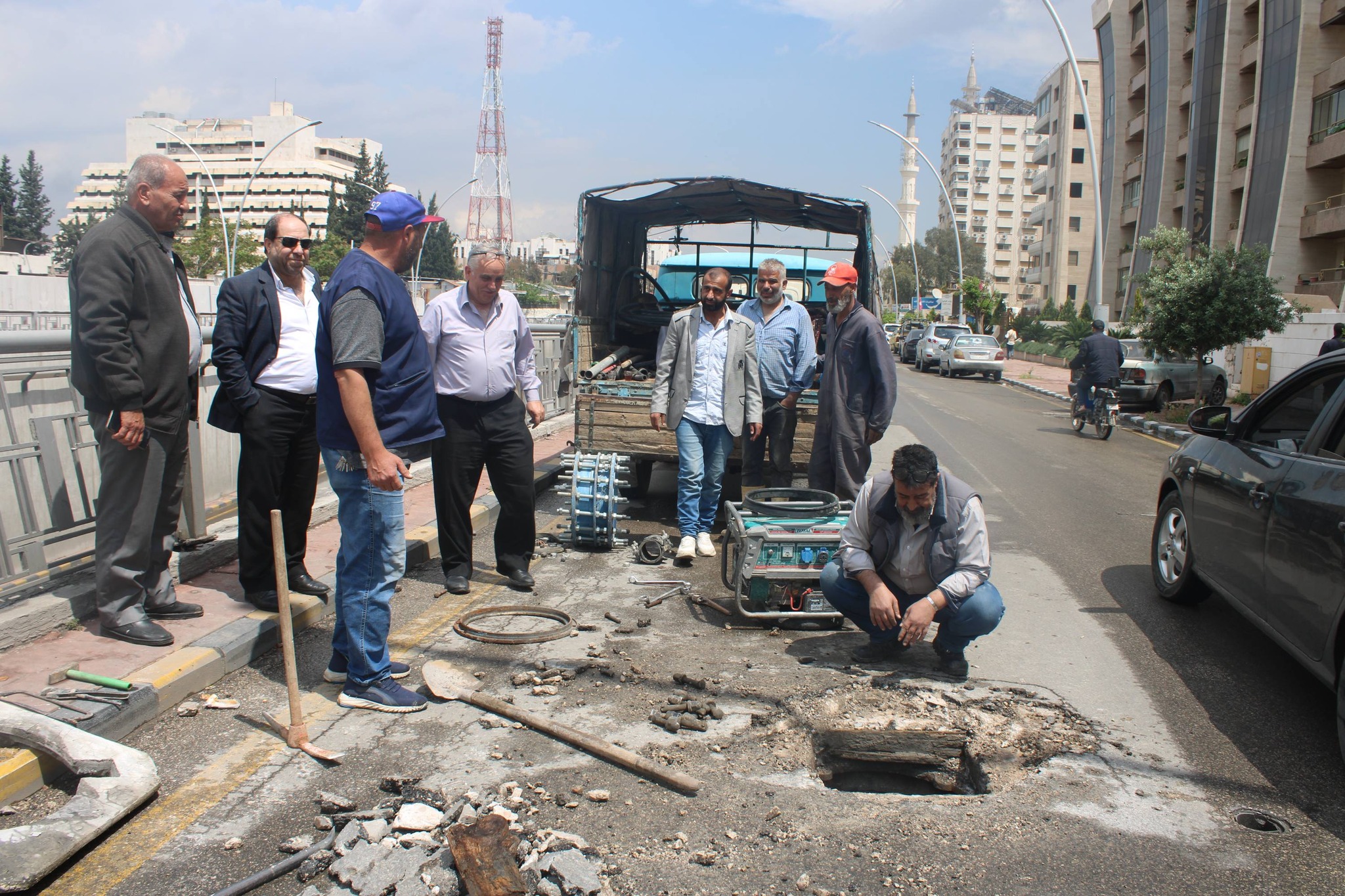 إصلاح خط المياه الرئيسي في منطقة كفرسوسة