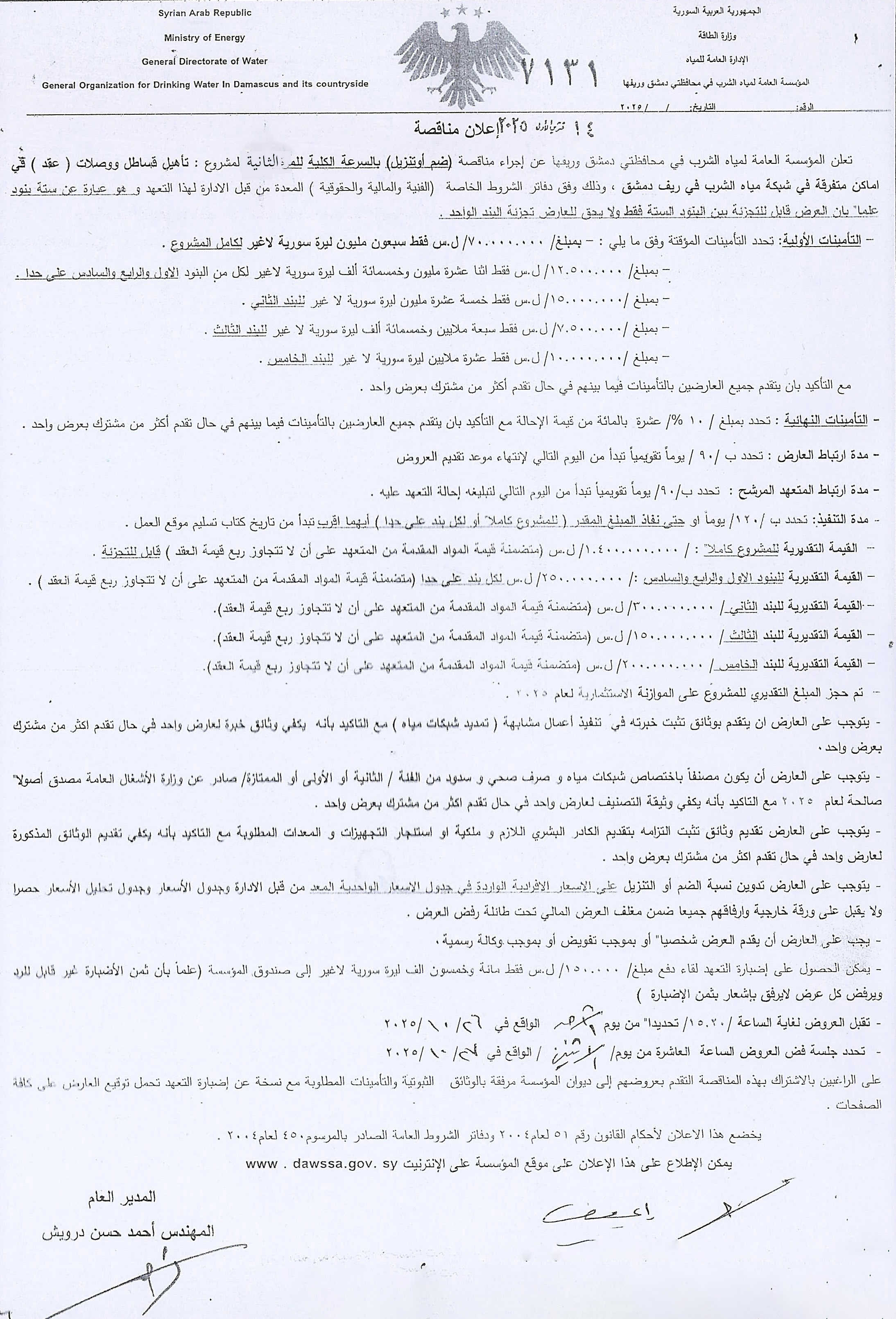 مناقصات شهر تشرين الأول 2025 - قسم أول