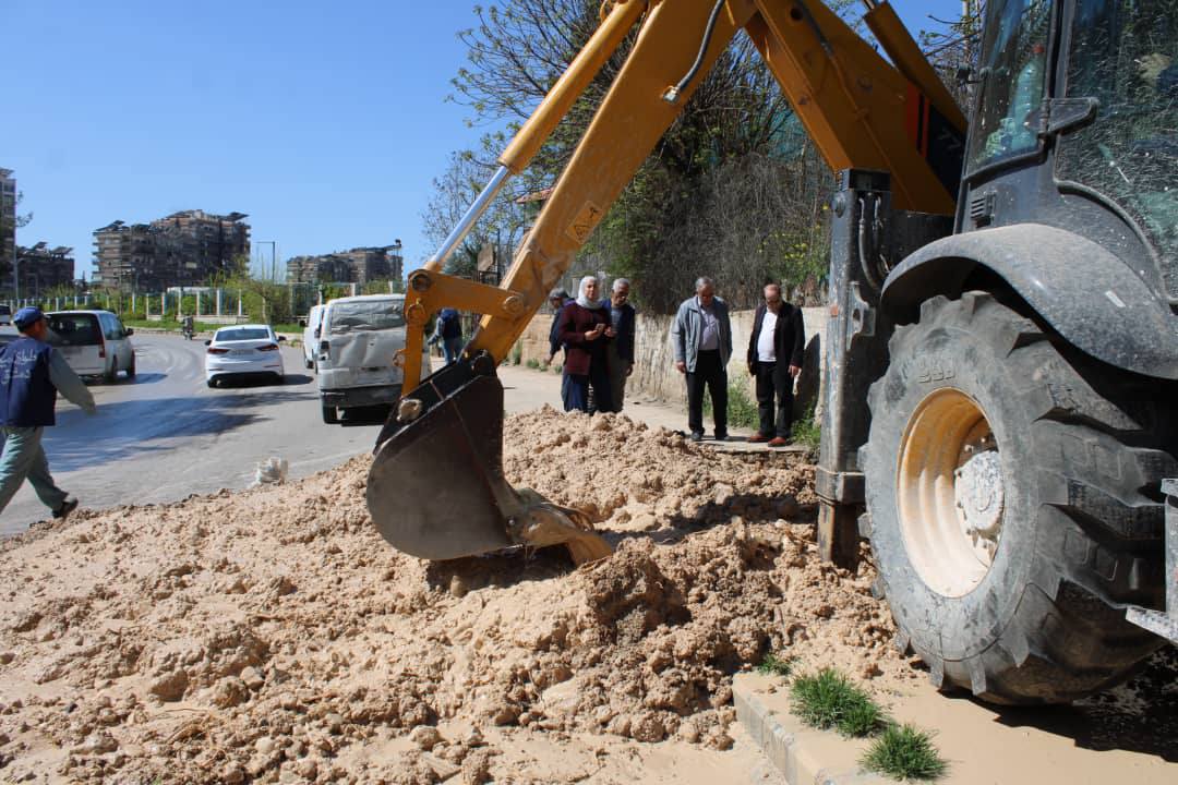 أعمال إصلاح خط المياه الرئيسي في منطقة أوتستراد العدوي