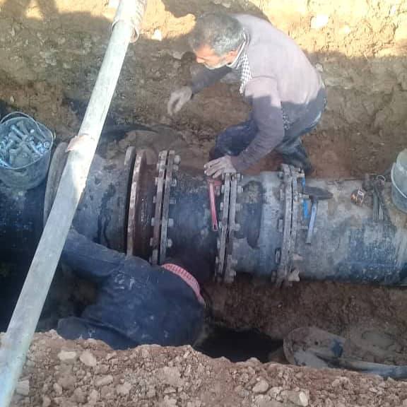 إعادة ضخ المياه إلى مدينة جيرود بعد الانتهاء من إصلاح خط الإسالة الرئيسي