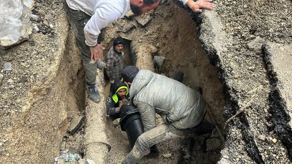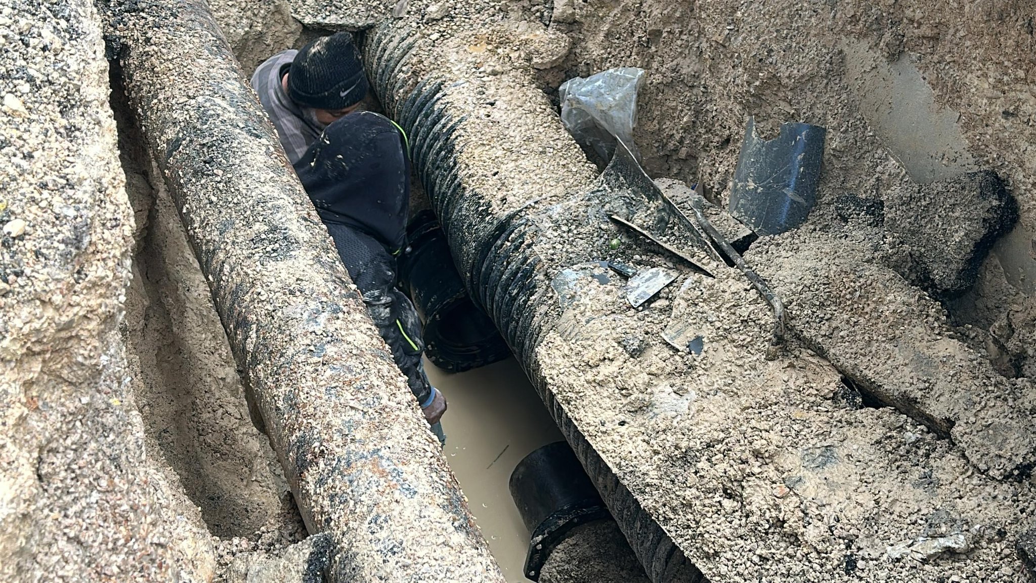 أعمال إصلاح خط مياه رئيسي بقطر 250 مم في منطقة وادي المشاريع