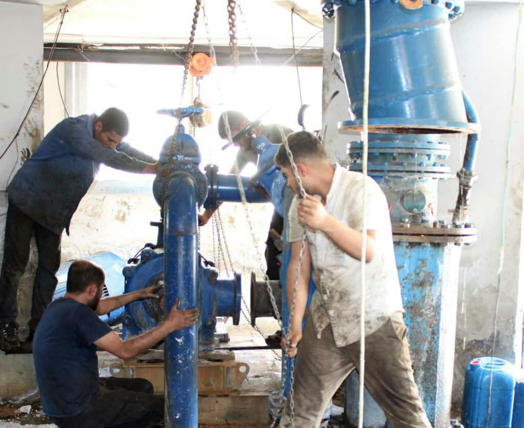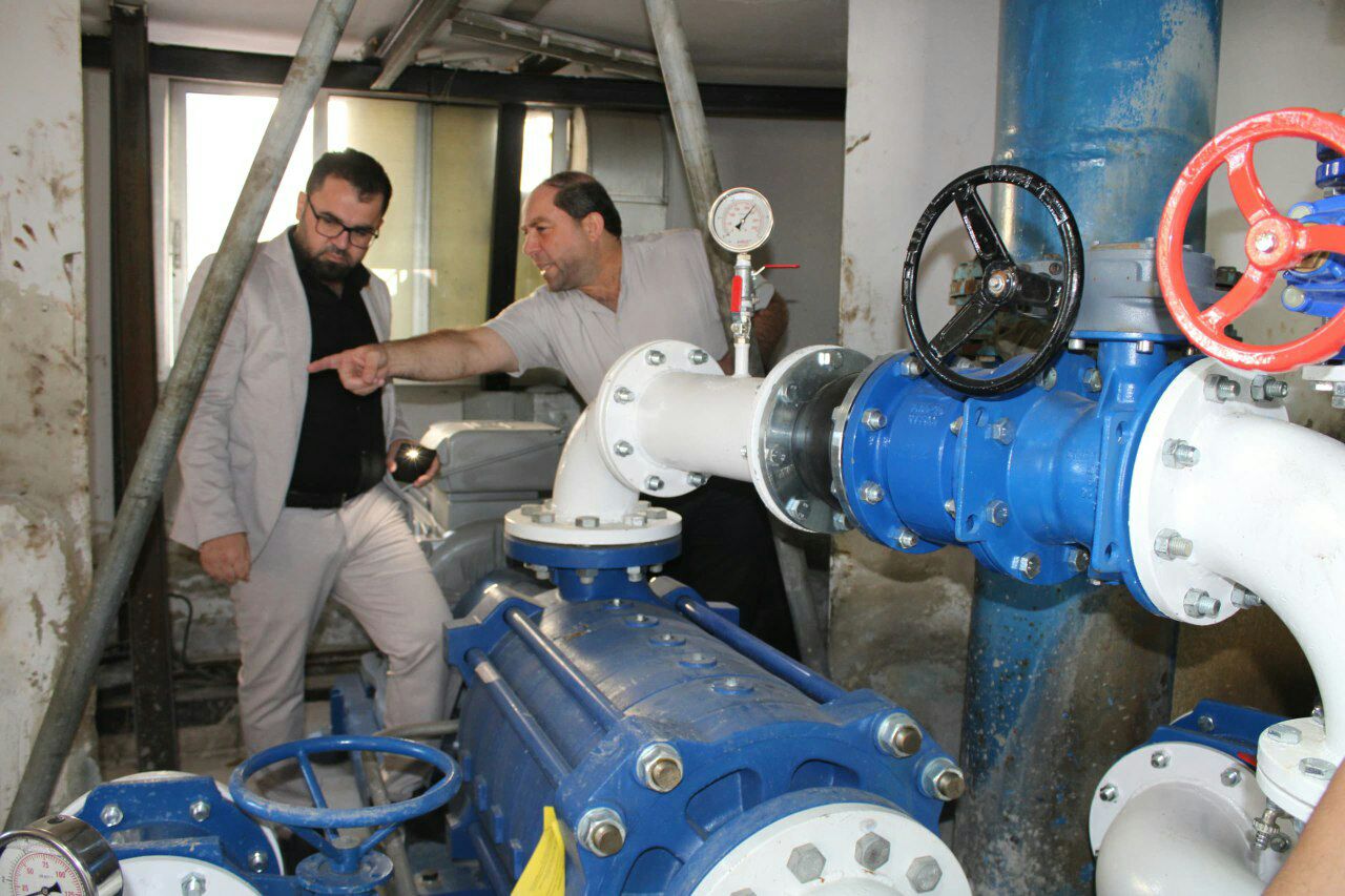 للاطّلاع على أعمال تنفيذ مشروع استبدال المضخات المعطلة في محطة ضخ دمر بالتعاون مع منظمة اليونيسف، زار السيد المدير العام لمؤسسة مياه الشرب في محافظة دمشق وريفها المهندس "أحمد درويش" موقع العمل واستمع إلى شرح من الكوادر الفنية حول مراحل التركيب والتشغيل التجريبي للمضخات الجديدة، حيث تم تركيب ثلاث مضخات أفقية تغذي الخزان الرئيسي والخزانات الفرعية في مشروع دمر تبلغ طاقتها القصوى 800 م3، بما يؤمن تحسين التغذية المائية للجزر المستفيدة في المشروع وتوسعه بالكامل.