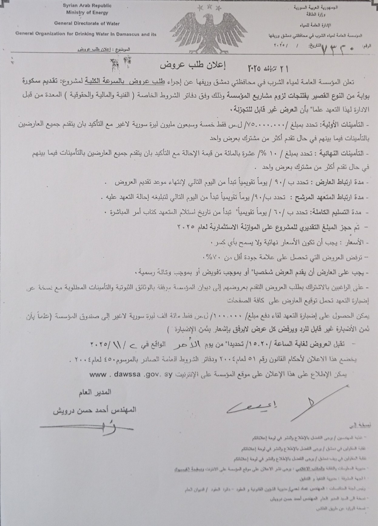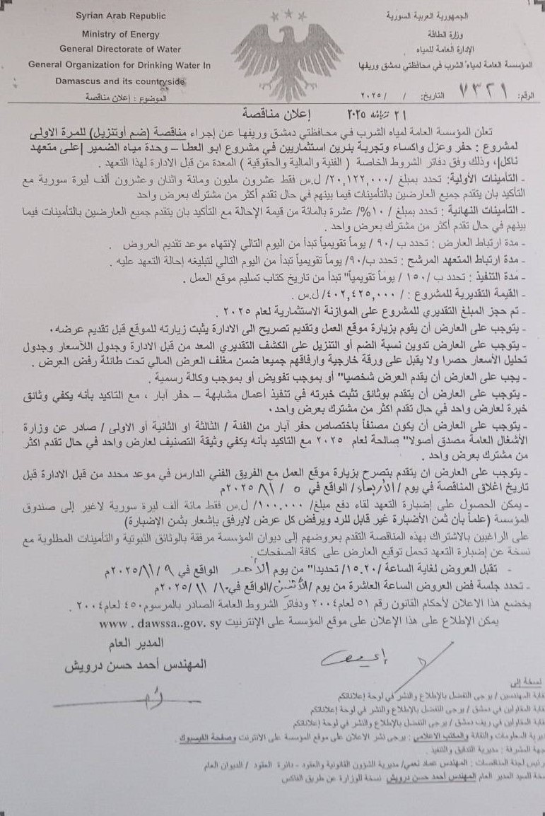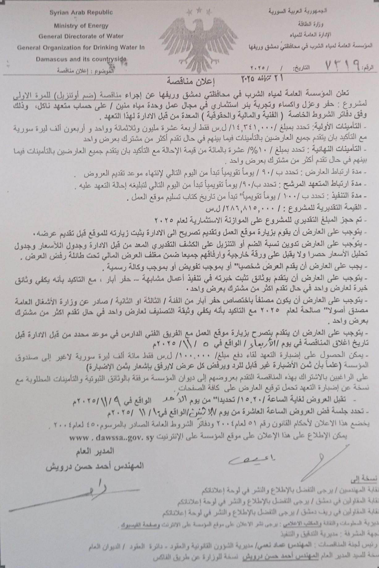 مناقصات شهر تشرين الأول 2025 - قسم ثاني