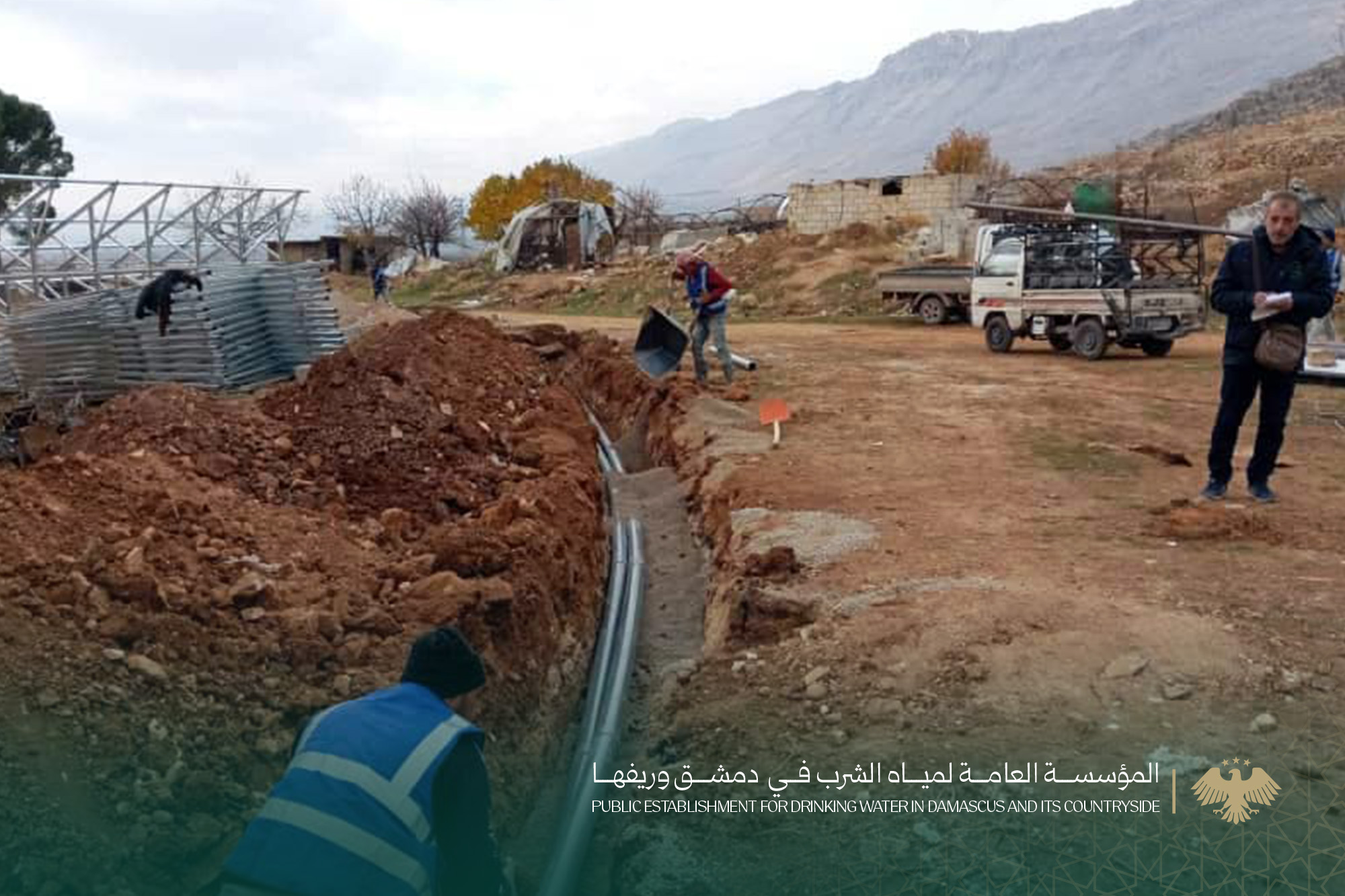 تتابع المؤسسة العامة لمياه الشرب والصرف الصحي في محافظة دمشق وريفها، بالتعاون مع منظمة أوكسفام (OXFAM)، تنفيذ مشروع تجهيز وتشغيل بئر "الطالع" في منطقة الزبداني، بطاقة إنتاجية تصل إلى 45 م3 في الساعة، وذلك ضمن الجهود الرامية إلى تعزيز مصادر المياه في المنطقة.
